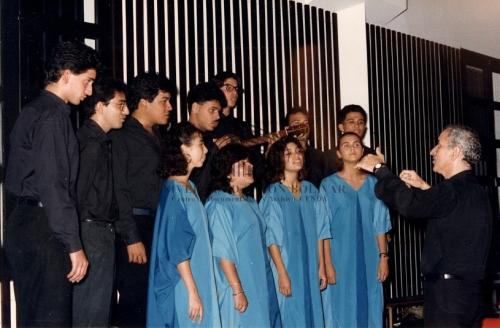 Fotografía CENDA No. C1S16F78. Participación del Orfeón Universitario Simón Bolívar. Acto en el Paraninfo de la USB, bajo la dirección del Maestro Alberto Grau. Enero 1990.